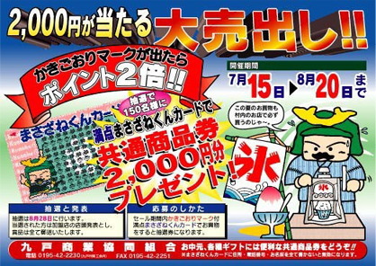 | 平成23年12月 | 九戸商業協同組合「新共通商品券」、「プレミアム商品券」発行事業の支援 |